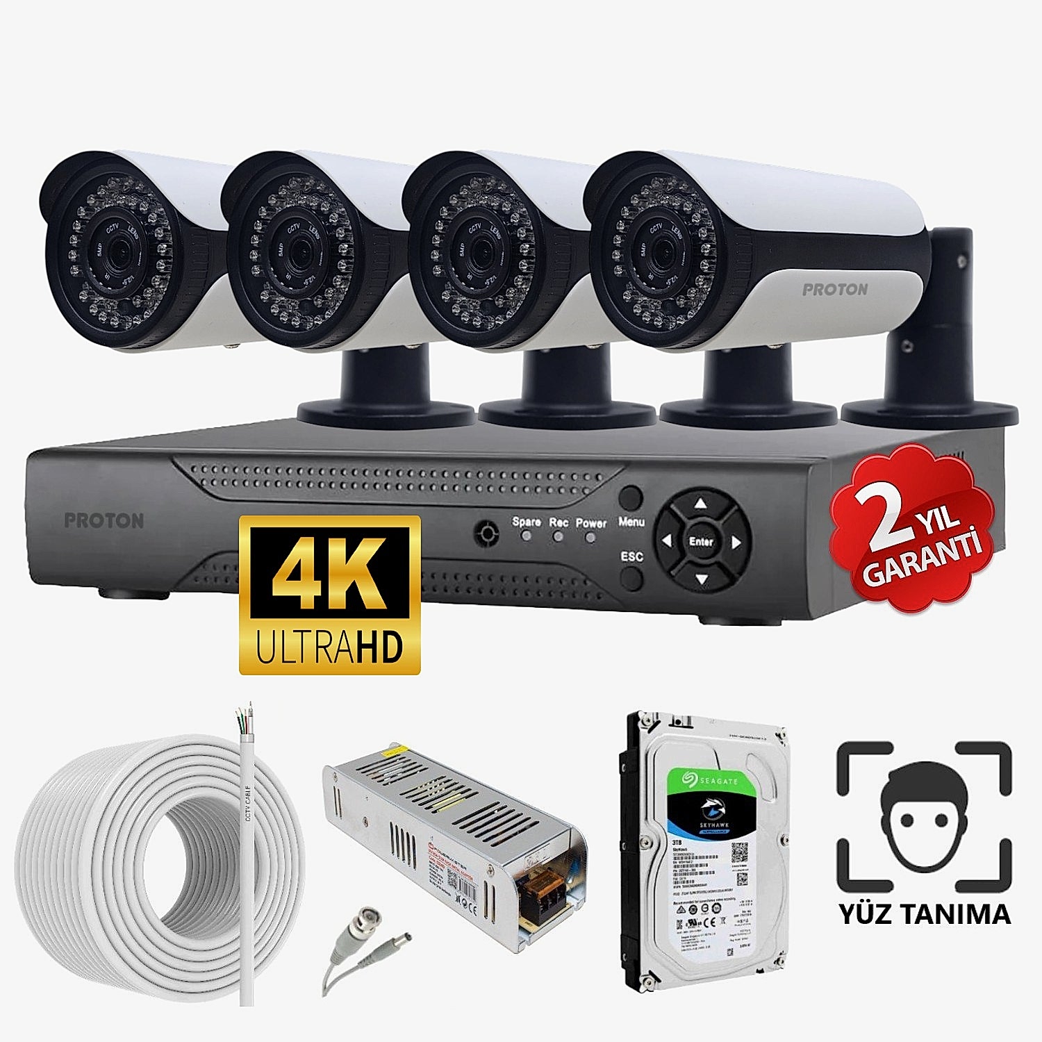 4 Kameralı AHD PRO Yüz Tanımalı Güvenlik Kamerası Seti Paket İçeriği:
